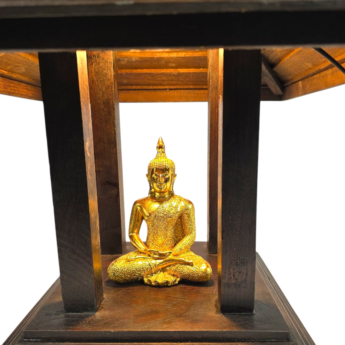 - Besonderheit: Im Zentrum des Hauses thront eine goldfarbene Buddha-Figur, die von oben mit einem sanften Licht bestrahlt wird. Dieses Highlight sorgt nicht nur für sanfte Beleuchtung, sondern schafft auch eine meditative und friedliche Atmosphäre.