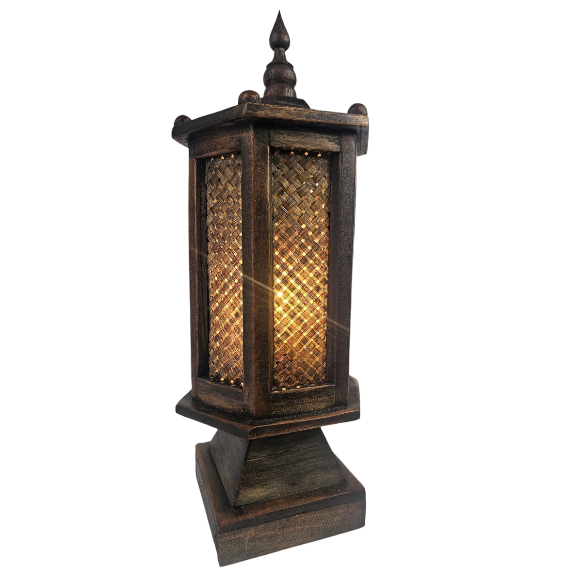 Erleben Sie die faszinierende Ausstrahlung unserer asiatischen Lampe - handgefertigt in Thailand. Gefertigt aus edlem Holz, in sorgfältiger Handarbeit, bringt diese Lampe eine einzigartige und authentische Atmosphäre in Ihr Zuhause. Sie wird von talentierten thailändischen Handwerkern hergestellt und erzählt so ihre eigene Geschichte. Das warme, sanfte Licht, das durch die geschmackvollen Seitenwände aus Holz streut, schafft in jeder Umgebung eine warme und einladende Atmosphäre. Die Lampe ist mit einer E27 Fassung ausgestattet und eignet sich perfekt als Tischlampe. Stellen Sie sie auf einem Beistelltisch, Schreibtisch oder Nachttisch auf, um Ihrem Raum eine gemütliche und behagliche Atmosphäre zu verleihen. Unsere asiatische Lampe ist nicht nur eine Lichtquelle, sondern auch ein Statement. Sie steht für Geschmack, Stil und das Bewusstsein für hochwertige Handwerkskunst. Lassen Sie sich von ihrer Einzigartigkeit und Schönheit verzaubern. Erleben Sie mit unserer asiatischen Lampe die harmonische Verschmelzung von traditioneller Handwerkskunst und zeitgenössischem Design. Lassen Sie diese einzigartige Lampe ein fesselndes Highlight in Ihrem Interieur sein. Sie werden von der sorgfältigen Verarbeitung und besonderen Ausstrahlung begeistert sein. Verleihen Sie Ihrem Zuhause mit unserer asiatischen Holzlampe einen Hauch von Exotik. Sie ist nicht nur eine Lampe, sondern Kunst.