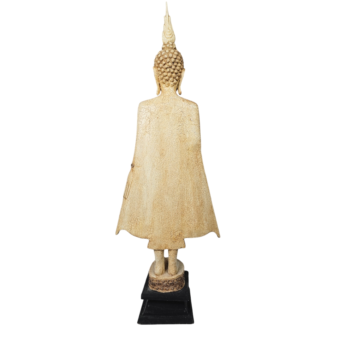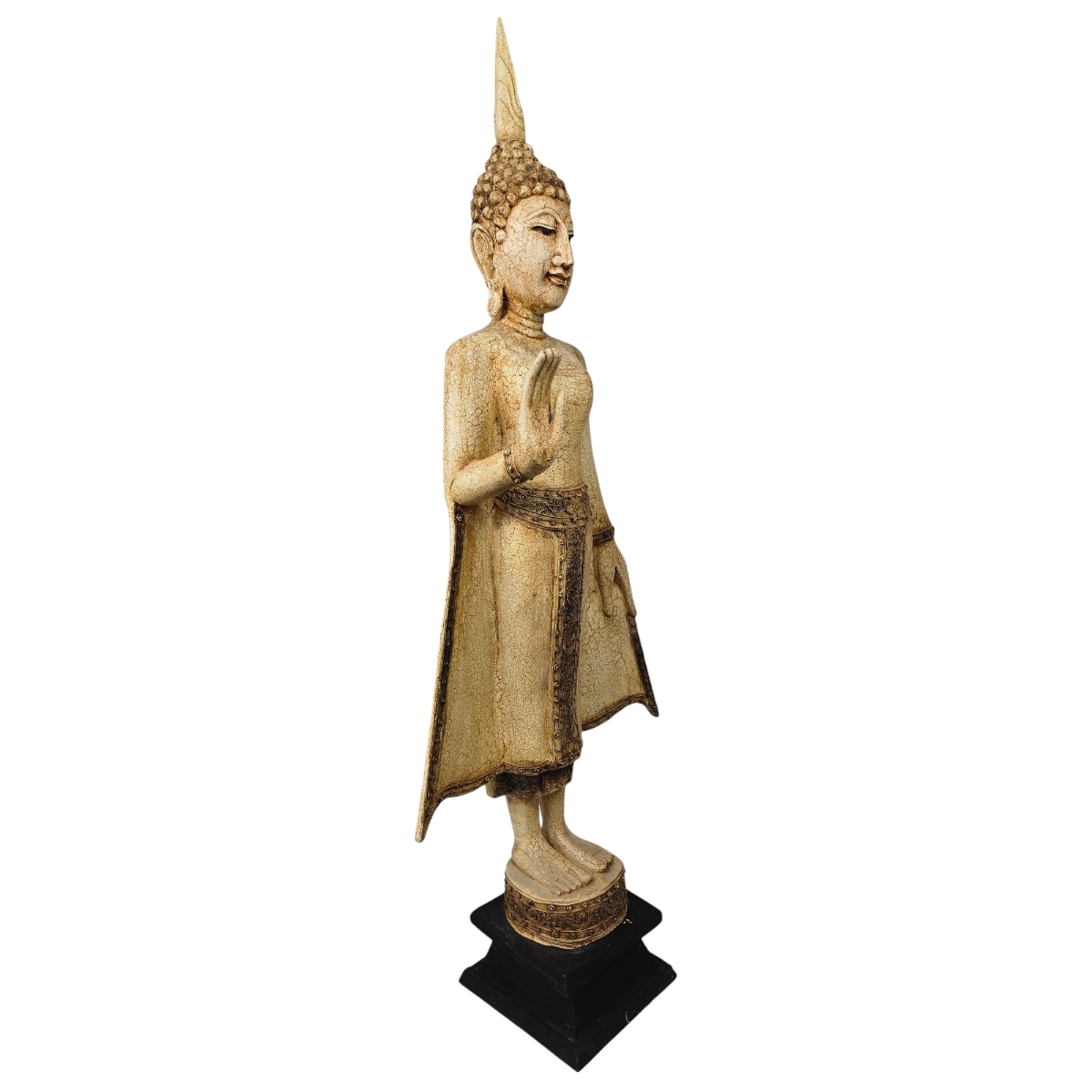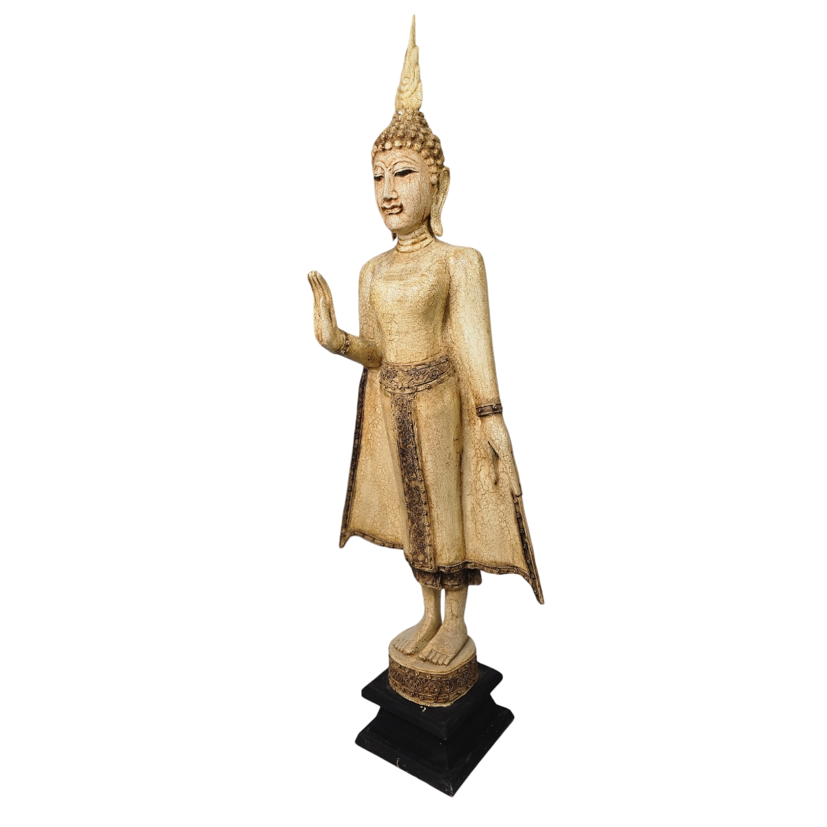 Entdecken Sie das Prunkstück für Ihr Zuhause: Unser Buddha, handgefertigt in Thailand und sorgfältig mit Mosaiksteinen verziert. Dieses einzigartige Kunstwerk besticht durch seine Farbe in Altweiß, die ihm eine ruhige und besinnliche Ausstrahlung verleiht. Gefertigt aus feinstem Holz, widerspiegelt dieses Unikat die Kultur und Handwerkskunst seiner Heimat. Lassen Sie diesen Buddha eine Oase der Ruhe und des Friedens in Ihrer Umgebung schaffen. Ein Meisterstück, das Sie immer wieder beeindrucken wird.