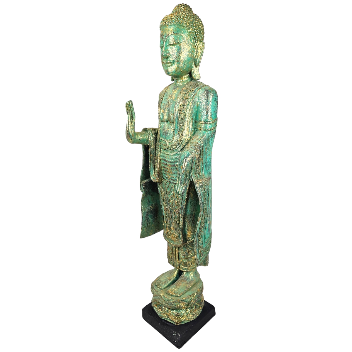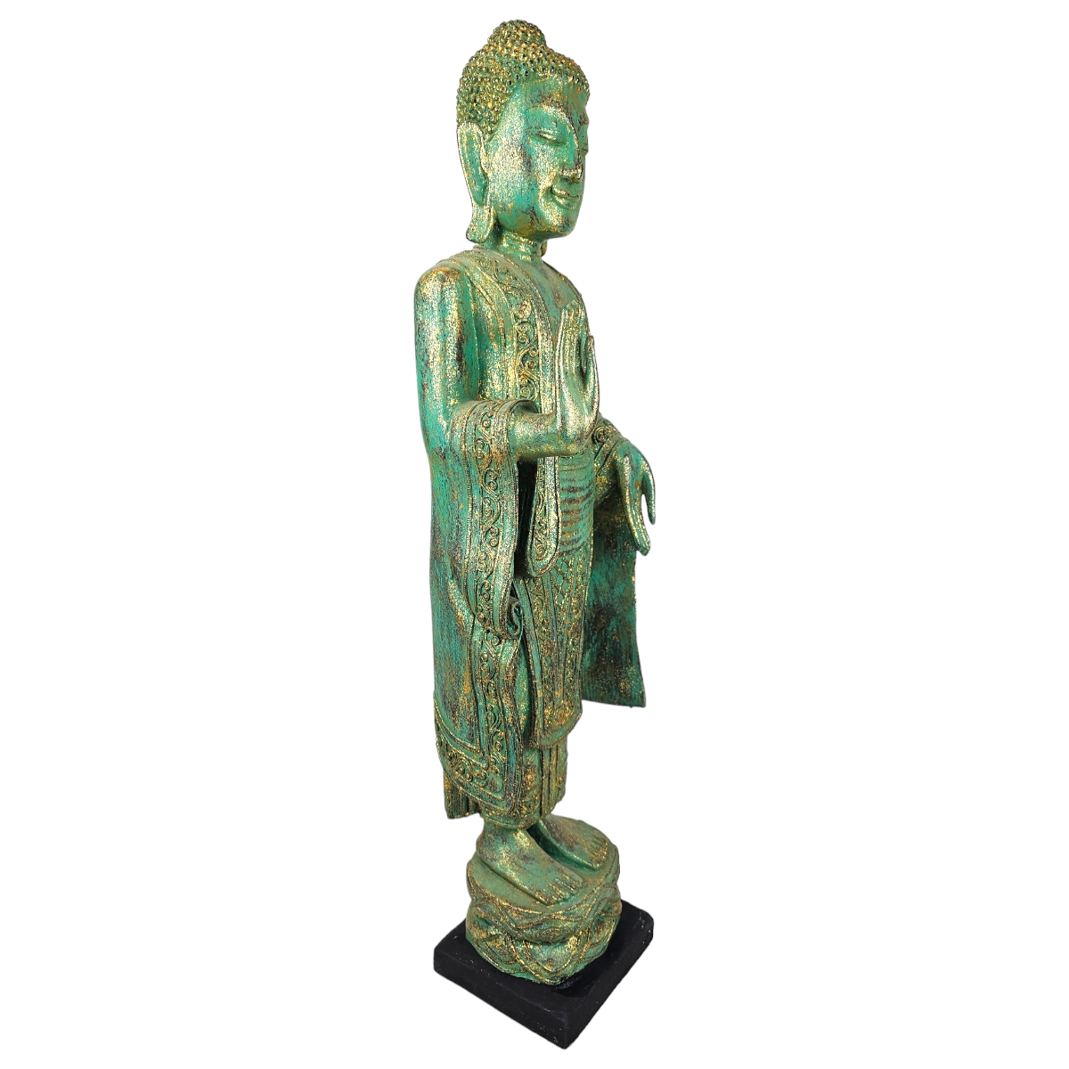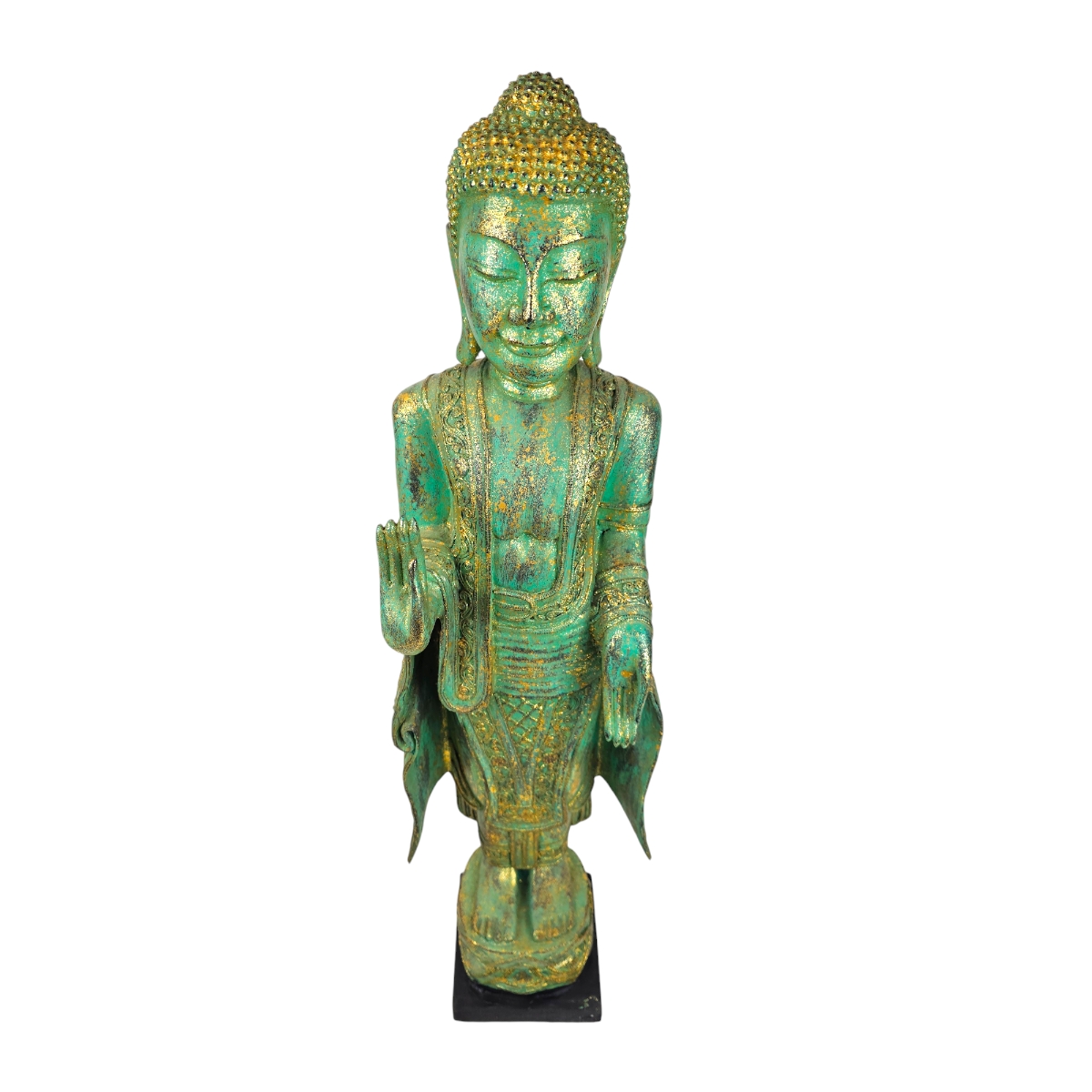 Diese handgefertigte Buddha-Figur aus Thailand ist mehr als nur ein Dekorationsstück. Geformt aus feinstem Holz verkörpert sie Spiritualität und Ruhe, bringt Harmonie in jeden Raum und bietet einen Ort der Meditation und inneren Einkehr. Jede Figur ist ein Unikat, in die Handwerkskunst und Liebe zum Detail eingeflossen sind, was sie zu einem außergewöhnlichen Geschenk oder einzigartigem Schmuckstück Ihrer Einrichtung macht. Betonen Sie Ihre Wohlfühloase mit dieser ausdrucksstarken Buddha-Figur und bringen Sie einen Hauch von Thailand in Ihr Zuhause.