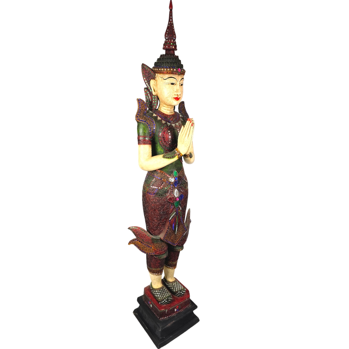 Lassen Sie die Ruhe und Gelassenheit Asiens in Ihr Zuhause einfließen mit dieser handgefertigten Buddha-Figur aus dem Norden Thailands. Jede Figur ist ein Unikat und strahlt ihre eigene, besondere Energie aus. Die filigrane Handarbeit und die Liebe zum Detail machen diese Buddha Figur zu einem echten Hingucker. Bewundern Sie das kunstvolle Design und die feinen Details, die ihr ein unvergleichbares Aussehen verleihen. Diese wunderschöne Dekoration kann nicht nur Ihr Zuhause aufwerten, sondern erinnert Sie auch täglich an die bedeutenden Weisheiten Buddhas. Tragen Sie etwas von dieser spirituellen Ruhe in Ihr Leben - eine Bereicherung für jeden Raum und jede Seele.