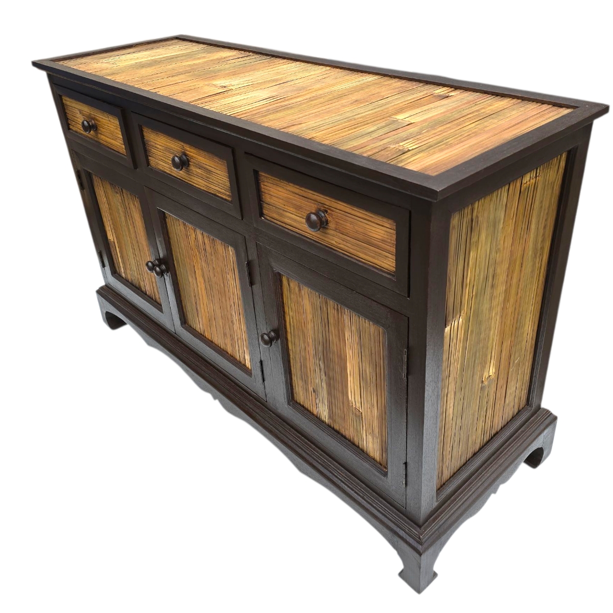- Design: Die einzigartige Kombination von robustem Holz mit eleganten Bambusstrukturen verleiht diesem Möbelstück eine unverwechselbare Optik.