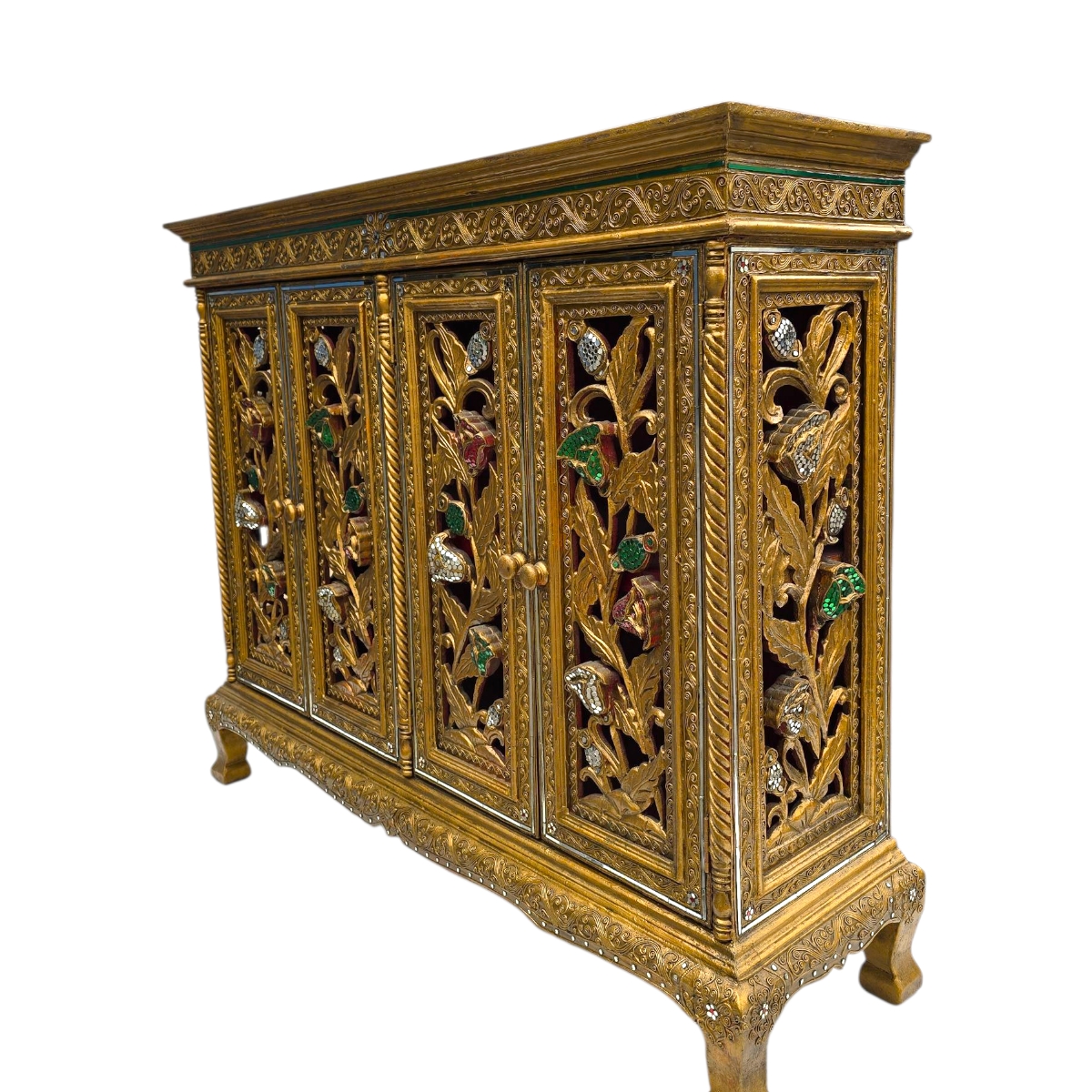 Entdecken Sie pure Eleganz und handwerkliche Meisterleistung mit der exquisiten Kommode Gold, einem wahrhaft bemerkenswerten Möbelstück aus Thailand. Diese hochwertige Kommode ist aus edlem Holz gefertigt und in einer luxuriösen goldenen Farbe gehalten, die jedem Raum einen Hauch von Glamour verleiht.