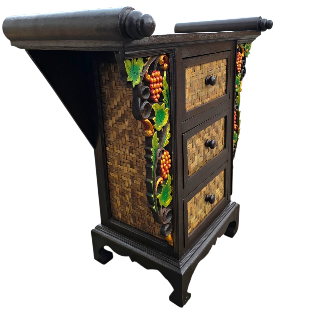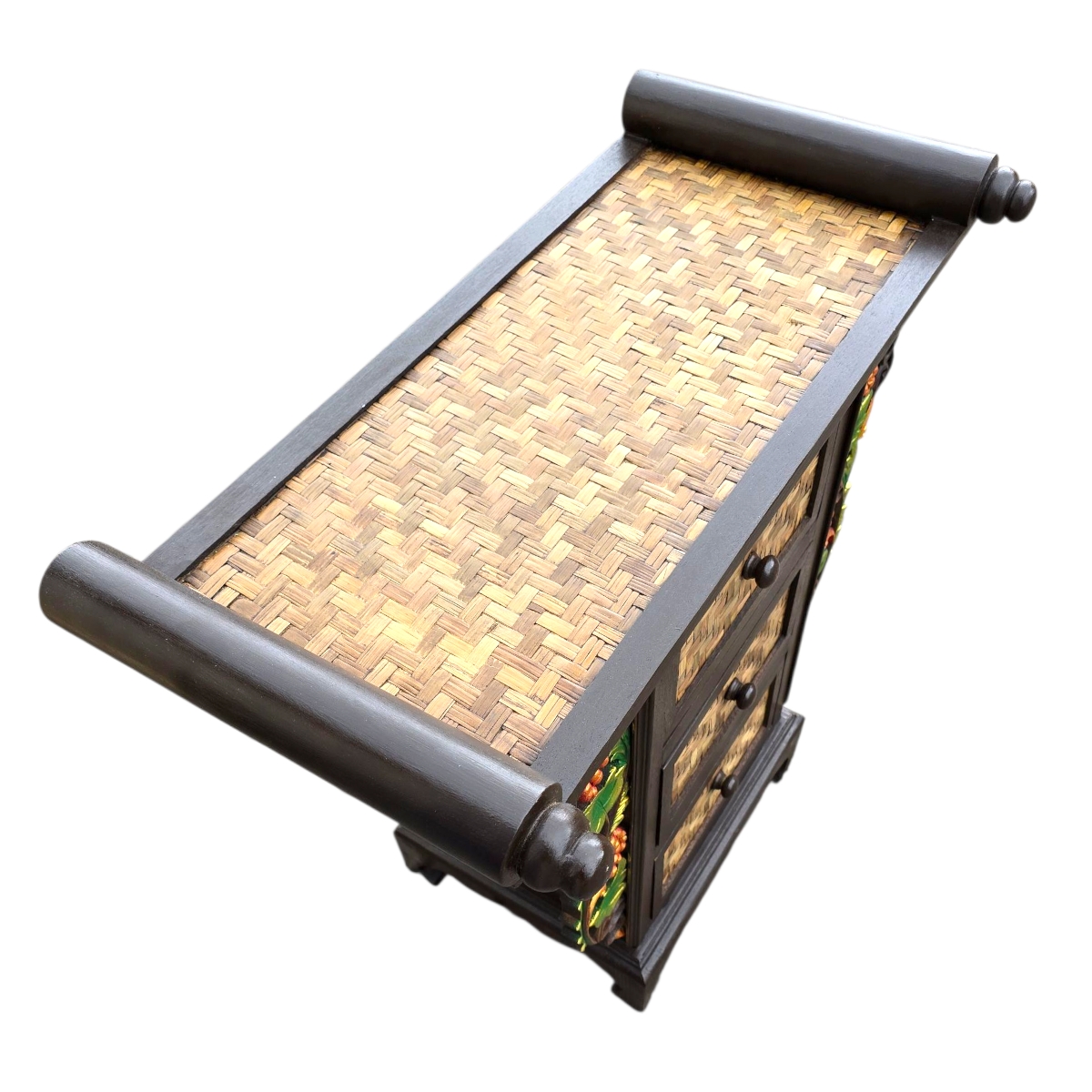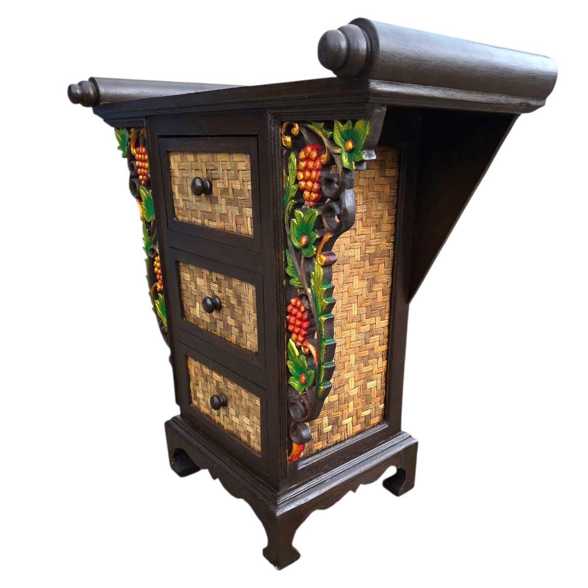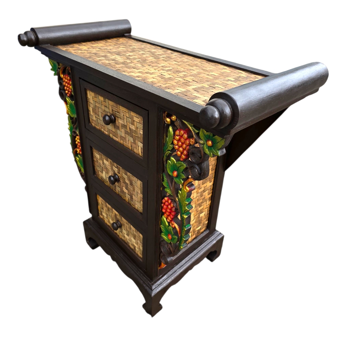 - Künstlerische Gestaltung: An den Seiten der Kommode finden Sie bunte Reliefs, die kunstvoll von Hand gefertigt wurden. Diese dekorativen Elemente fügen einen Hauch von farbenfrohem Flair hinzu und machen die Kommode zu einem wahren Blickfang.