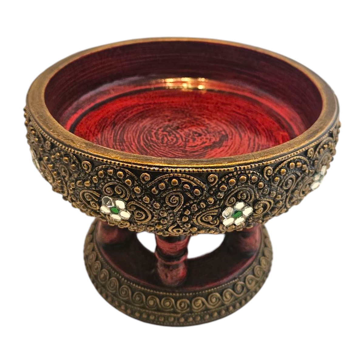 Verleihen Sie Ihrem Raum einen Hauch von Exotik und Eleganz mit unserem edlen Öl Tablett aus Thailand. Dieses wunderbar gestaltete Tablett, perfekt zum Tragen Ihrer Massageprodukte, kombiniert Funktionalität mit Ästhetik. Aus den feinsten Materialien mit traditionellen thailändischen Techniken gefertigt, bringt dieses Tablett eine Aura von Entspannung und Ruhe in jeden Raum. Aber das ist noch nicht alles - dieses vielseitige Stück kann auch als Obstschale verwendet werden, wodurch es nicht nur ästhetisch ansprechend, sondern auch praktisch ist. Gönnen Sie sich mit diesem Öl Tablett einen Hauch von Luxus und verwandeln Sie Ihre alltägliche Umgebung in ein stilvolles Wellness-Paradies.