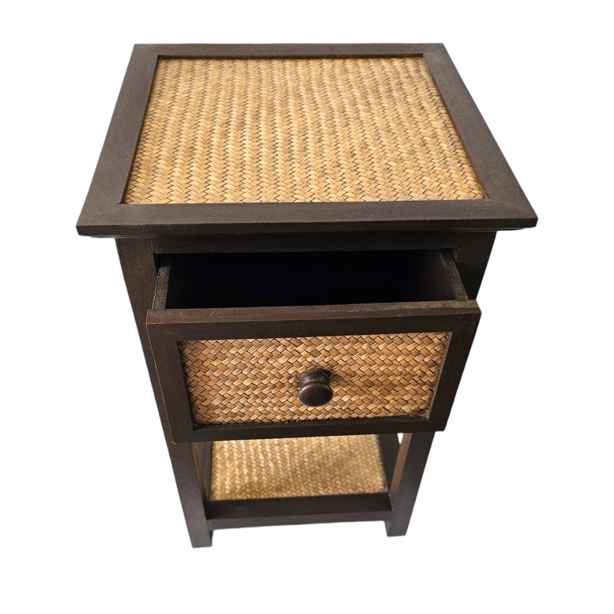Entdecken Sie die Faszination von Handarbeit aus dem Herzen Thailands. Diese luxuriöse Kommode aus Rattan ist ein Meisterwerk, das handgefertigt wurde, um Ihrem Zuhause eine einzigartige und stilvolle Note zu verleihen. Die dunkelholzigen Rahmen verleihen der Kommode einen edlen, robusten Charakter, während die Rattanschublade für funktionale Schönheit und Praktikabilität sorgt. Stellen Sie es neben Ihr Bett als charmanten Nachttisch oder im Wohnzimmer als stilvollen Akzent. Diese beeindruckende Kommode zieht alle Blicke auf sich und verschönert jeden Raum mit ihrer eleganten Ausstrahlung. Shoppen Sie jetzt und verleihen Sie Ihrem Zuhause einen Hauch thailändischer Handwerkskunst.