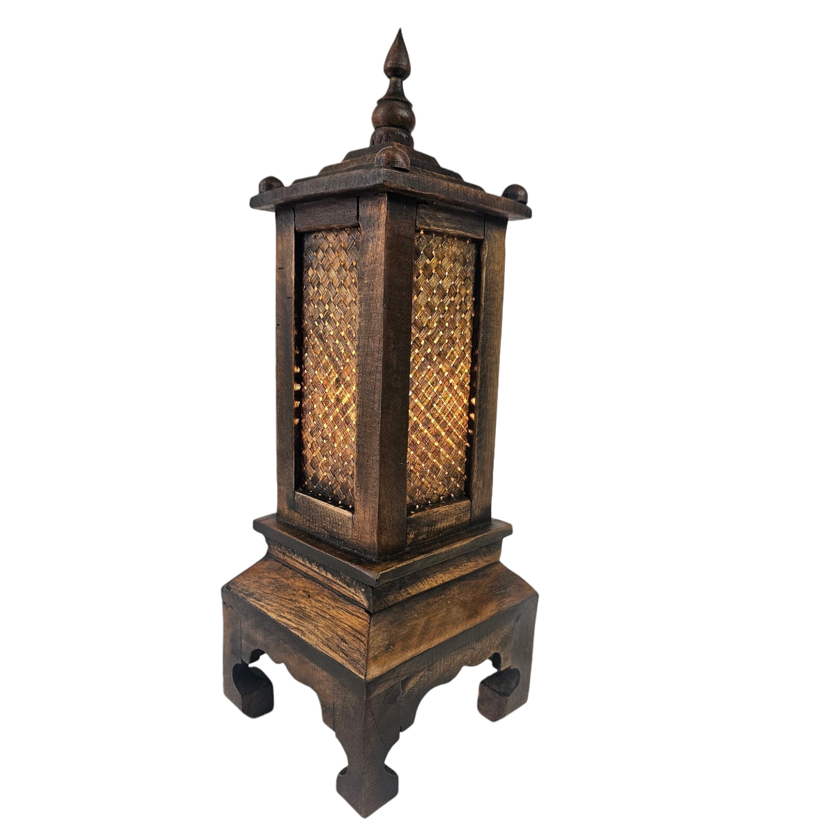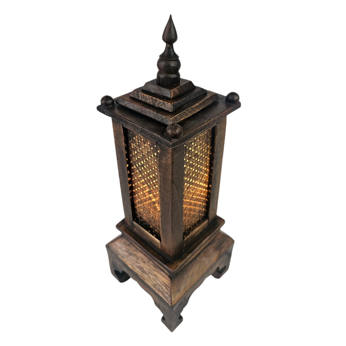 Erleben Sie die faszinierende Ausstrahlung unserer asiatischen Lampe - handgefertigt in Thailand. Gefertigt aus edlem Holz, in sorgfältiger Handarbeit, bringt diese Lampe eine einzigartige und authentische Atmosphäre in Ihr Zuhause. Sie wird von talentierten thailändischen Handwerkern hergestellt und erzählt so ihre eigene Geschichte. Das warme, sanfte Licht, das durch die geschmackvollen Seitenwände aus Holz streut, schafft in jeder Umgebung eine warme und einladende Atmosphäre. Die Lampe ist mit einer E27 Fassung ausgestattet und eignet sich perfekt als Tischlampe. Stellen Sie sie auf einem Beistelltisch, Schreibtisch oder Nachttisch auf, um Ihrem Raum eine gemütliche und behagliche Atmosphäre zu verleihen. Unsere asiatische Lampe ist nicht nur eine Lichtquelle, sondern auch ein Statement. Sie steht für Geschmack, Stil und das Bewusstsein für hochwertige Handwerkskunst. Lassen Sie sich von ihrer Einzigartigkeit und Schönheit verzaubern. Erleben Sie mit unserer asiatischen Lampe die harmonische Verschmelzung von traditioneller Handwerkskunst und zeitgenössischem Design. Lassen Sie diese einzigartige Lampe ein fesselndes Highlight in Ihrem Interieur sein. Sie werden von der sorgfältigen Verarbeitung und besonderen Ausstrahlung begeistert sein. Verleihen Sie Ihrem Zuhause mit unserer asiatischen Holzlampe einen Hauch von Exotik. Sie ist nicht nur eine Lampe, sondern Kunst.
