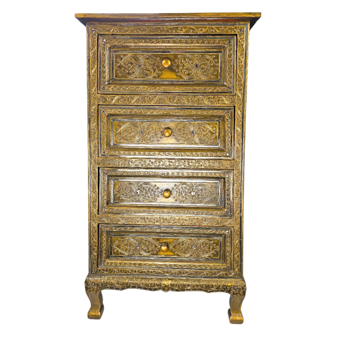- Exquisites Design: Der Schrank besticht durch seine reichhaltigen, goldfarbenen Akzente, die ihm einen Hauch von Luxus und Eleganz verleihen. Diese Farben schaffen ein warmes und einladendes Ambiente in jedem Raum.