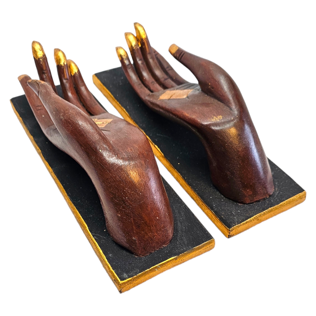 Buddha Hände - ein Stück spirituelle Harmonie für Ihr Zuhause. Diese einzigartigen Kunstwerke sind direkt aus Thailand handgefertigt und bringen Frieden und Ruhe in jede Umgebung. Jedes Detail der Buddha Hände, die kunstvoll an einem Holz befestigt sind, zeigt die exquisite Handwerkskunst unserer talentierten Kunsthandwerker. Die Buddha Hände sind nicht nur ein ästhetisches Highlight, sondern auch ein Symbol für spirituelle Erleuchtung und inneren Frieden. Sie können diese wunderschönen Stücke problemlos an jeder Wand befestigen, um sofort Wärme und Serenität in Ihr Zuhause zu bringen. Erschaffen Sie Ihre eigene Oase der Ruhe mit unseren handgefertigten Buddha Händen.